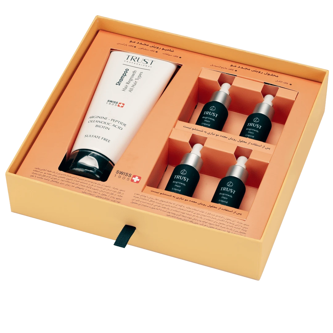 این کیت، مختص افرادیست که بارها از محصولات ضد ریزش موجود در بازار استفاده کردهاند اما نتیجه دلخواه خود را کسب نکردهاند! کیت تخصصی رویش مجدد تراست با استفاده از ترکیبات طبیعی، برای تاثیر گذاری بیشتر طراحی شده است و در مدت زمان 6 ماه، اثرات چشمگیری بر رشد مو خواهد داشت.